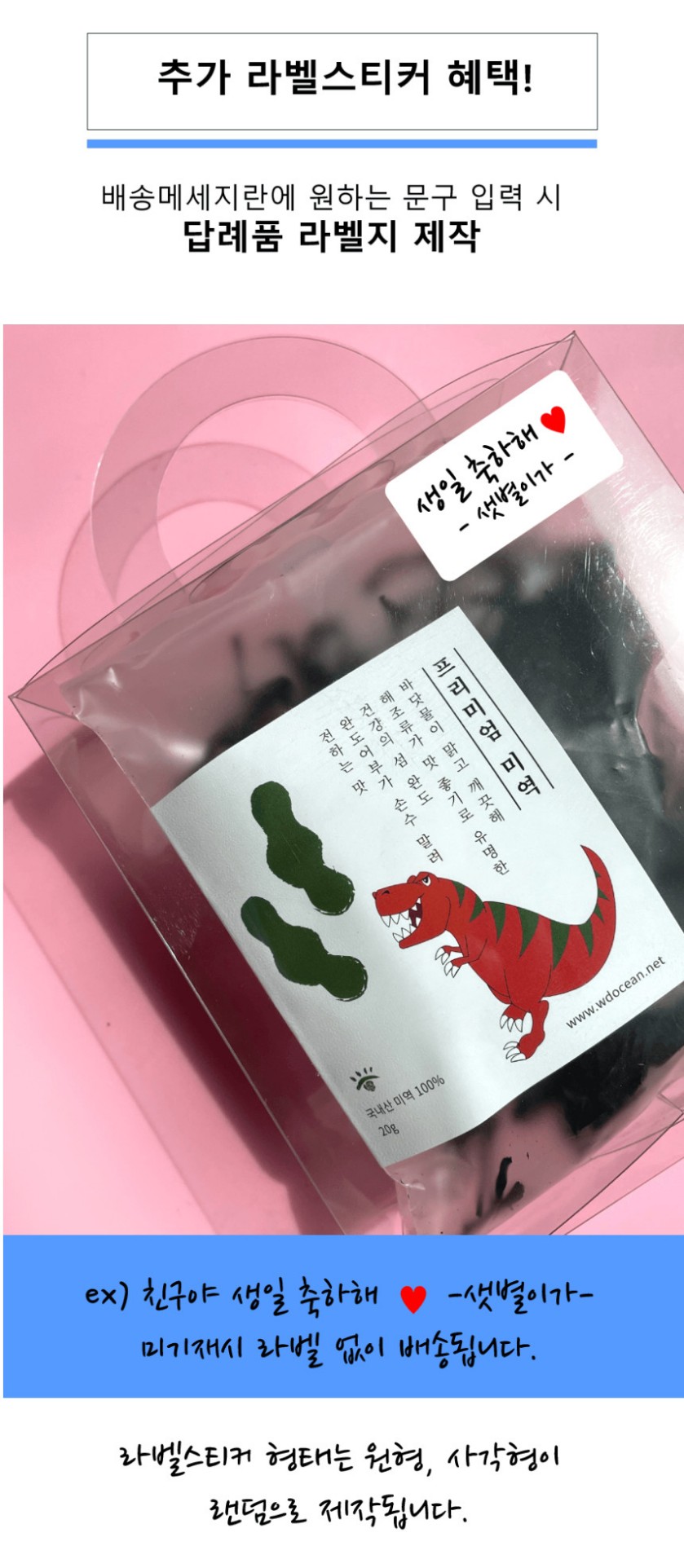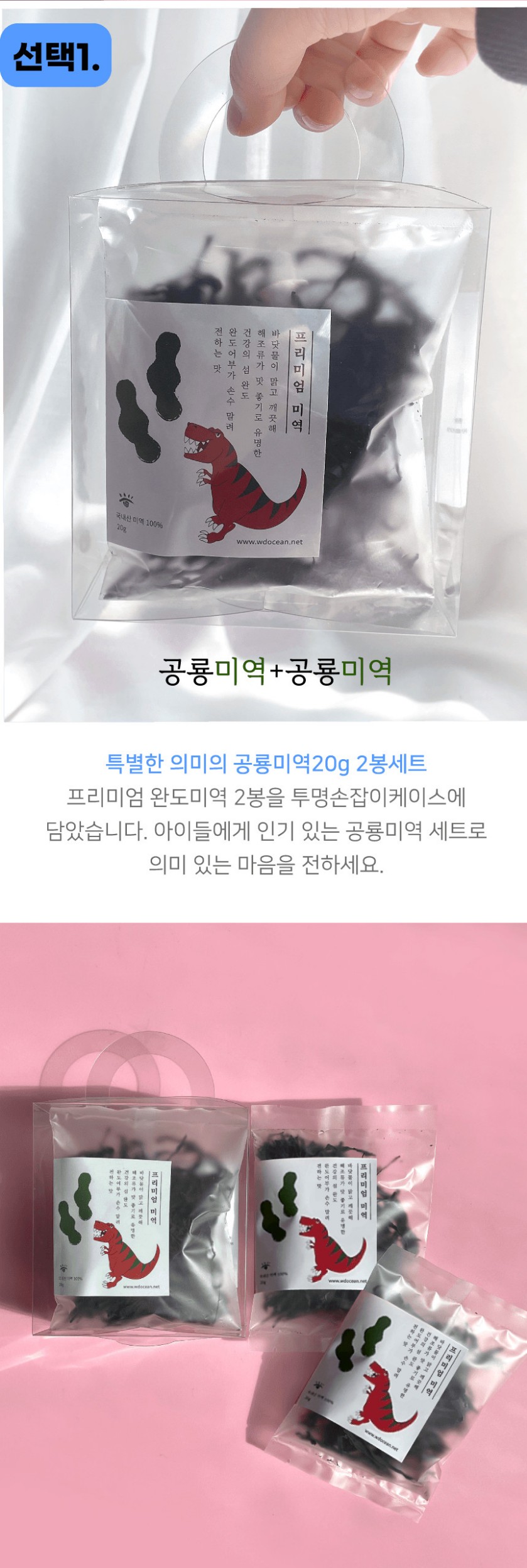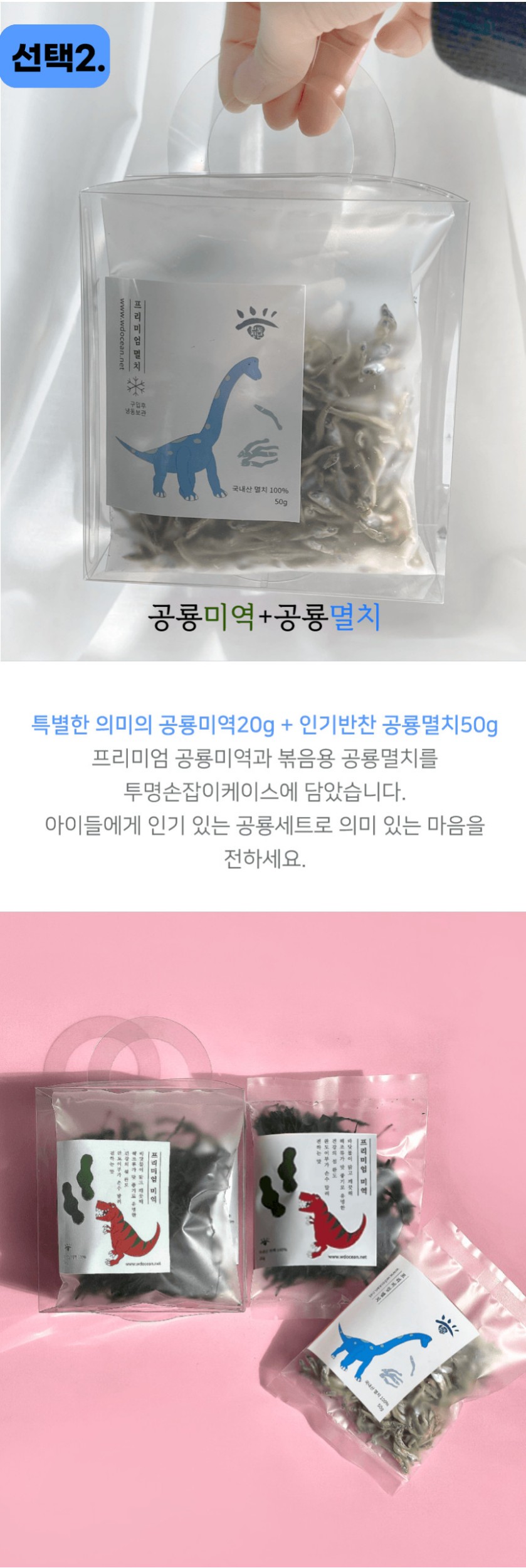 옵션 옵션 선택 01 공룡미역20g+공룡미역20g 02 공룡미역20g+공룡멸치50g(자멸)(+700)