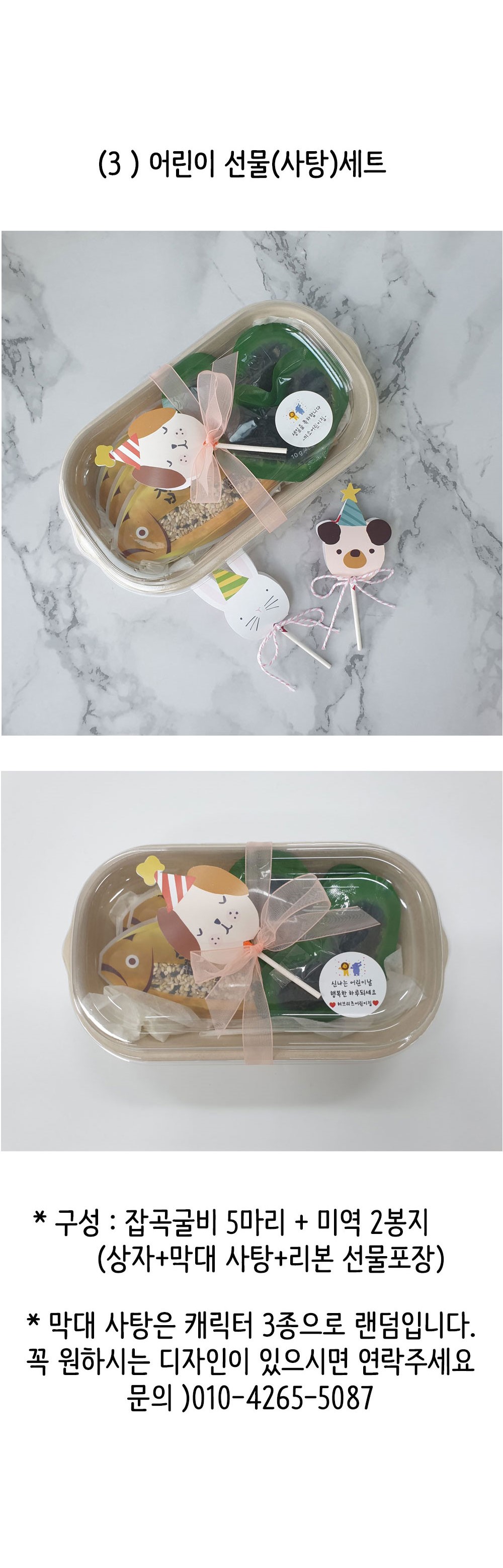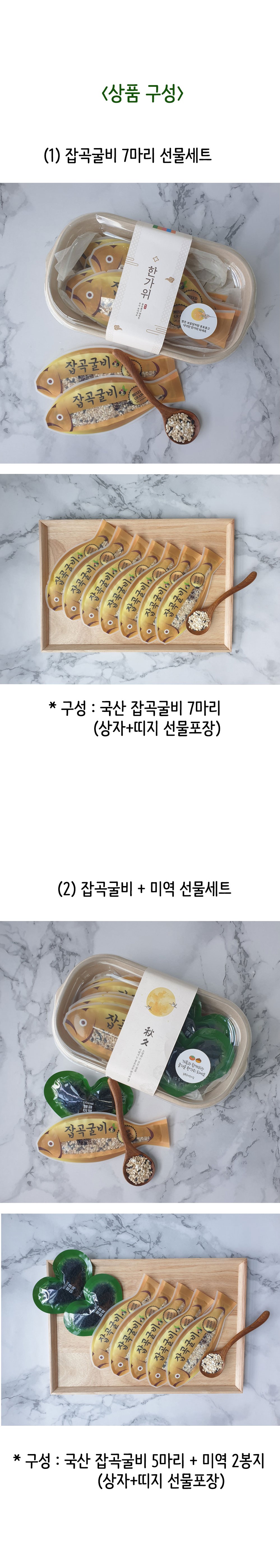 옵션 옵션 선택 선택1. 잡곡굴비 7마리 선물세트 선택2.잡곡굴비+미역선물세트 선택3.어린이 선물(사탕)세트(+1,000)