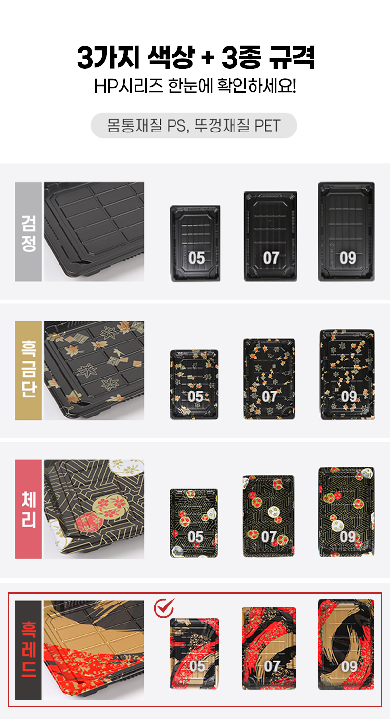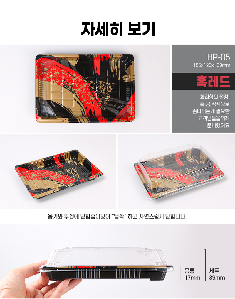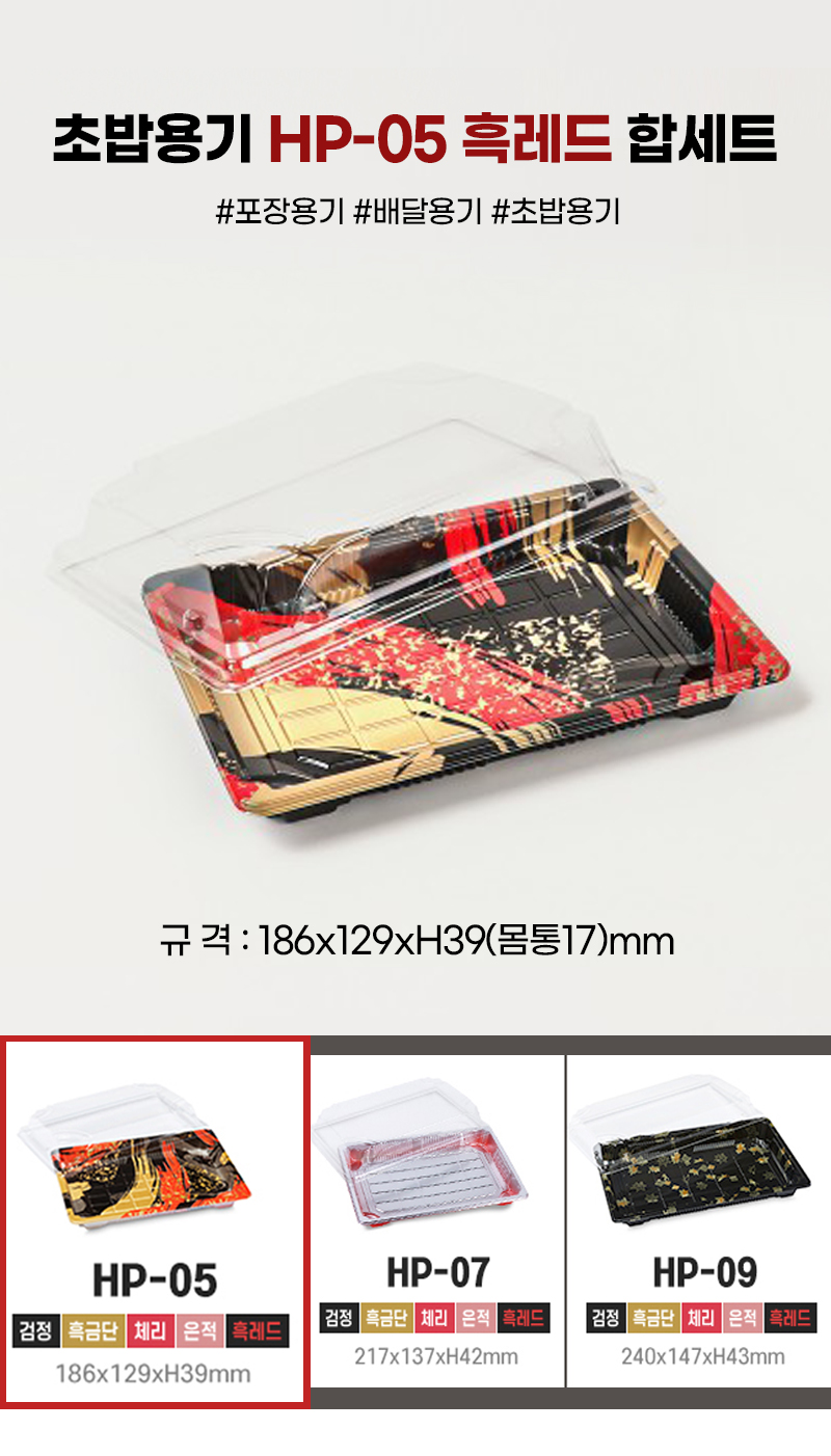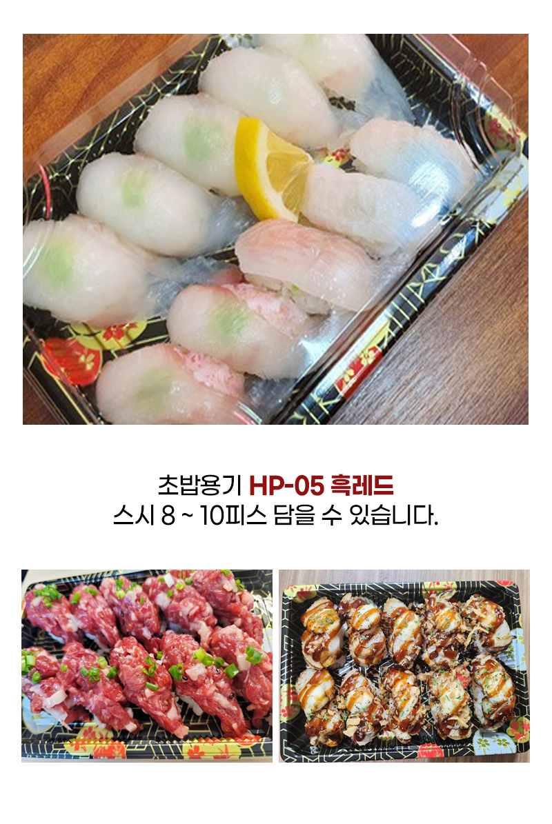 다온킹(소량)사각초밥용기 HP-05 흑레드 50개/100개 합세트