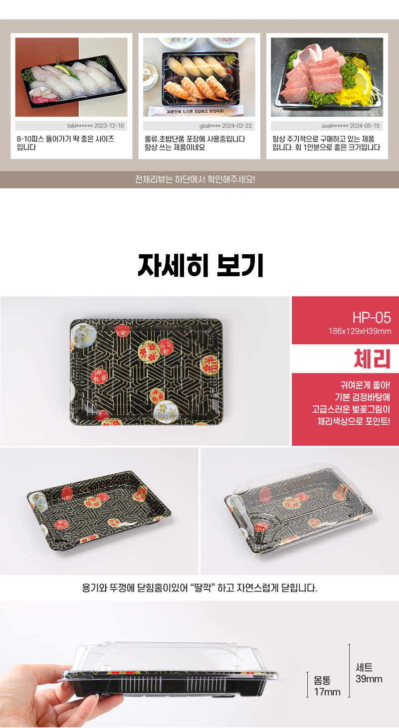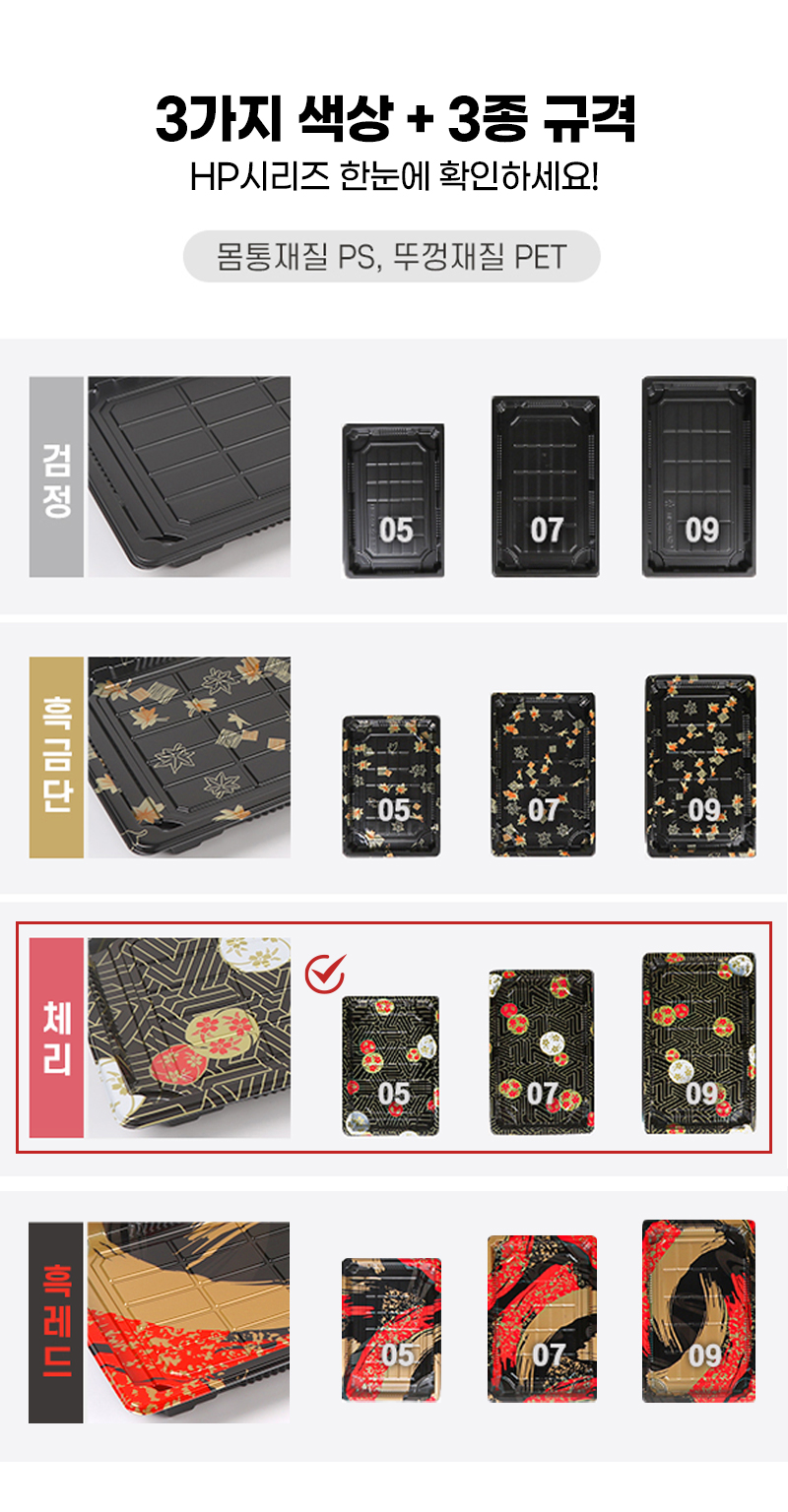 다온킹(소량)사각초밥용기 HP-05 체리 50개/100개 합세트