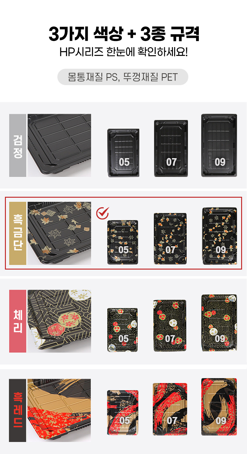 다온킹(소량) 사각초밥용기 HP-05 흑금단 50개/100개 합세트