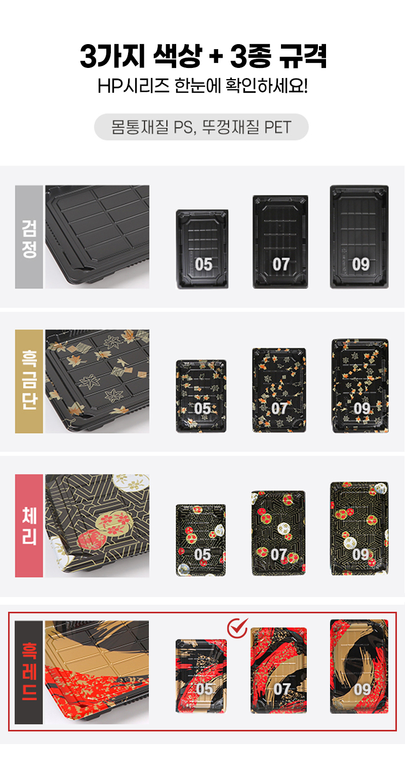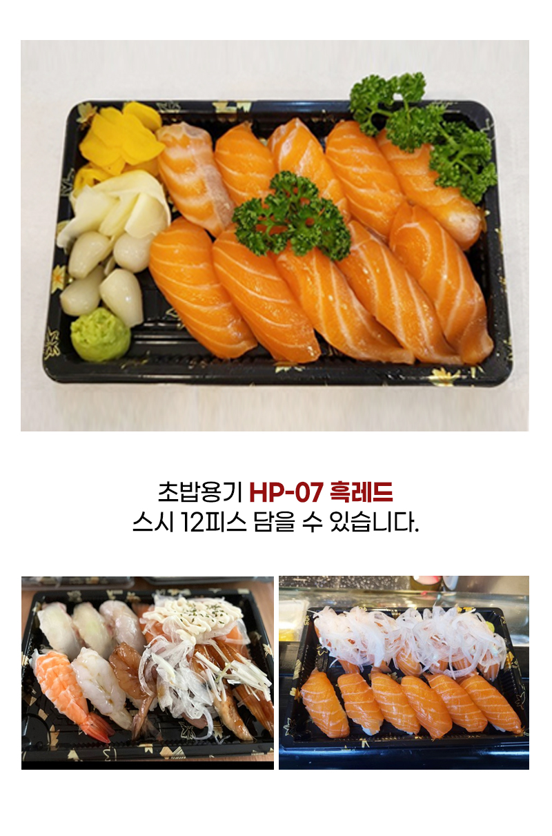 다온킹(소량) 사각초밥용기 HP-07 흑레드 50개/100개 합세트