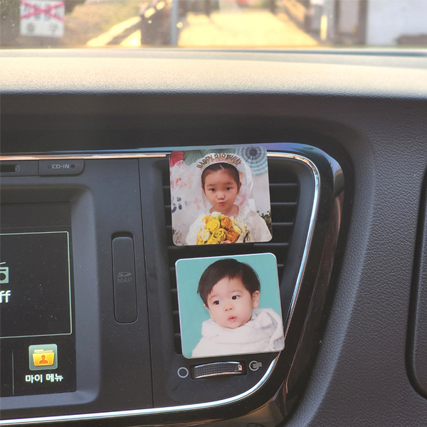 - 차량용포토액자 2개세트 자동차 송풍구 커플 아기 반려동물 사진 주문 제작 맞춤 선물포장