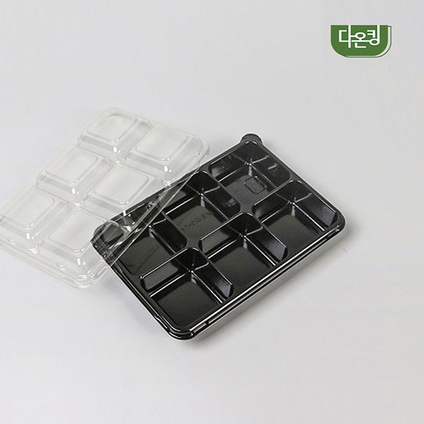 - 일회용 반찬용기 12144-1칸 흑색 600세트 죽 과일 샐러드 칸막이 포장 배달용기