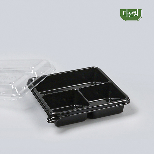 - 일회용 반찬용기 12144-3칸 흑색 600세트 죽 과일 샐러드 칸막이 포장 배달용기