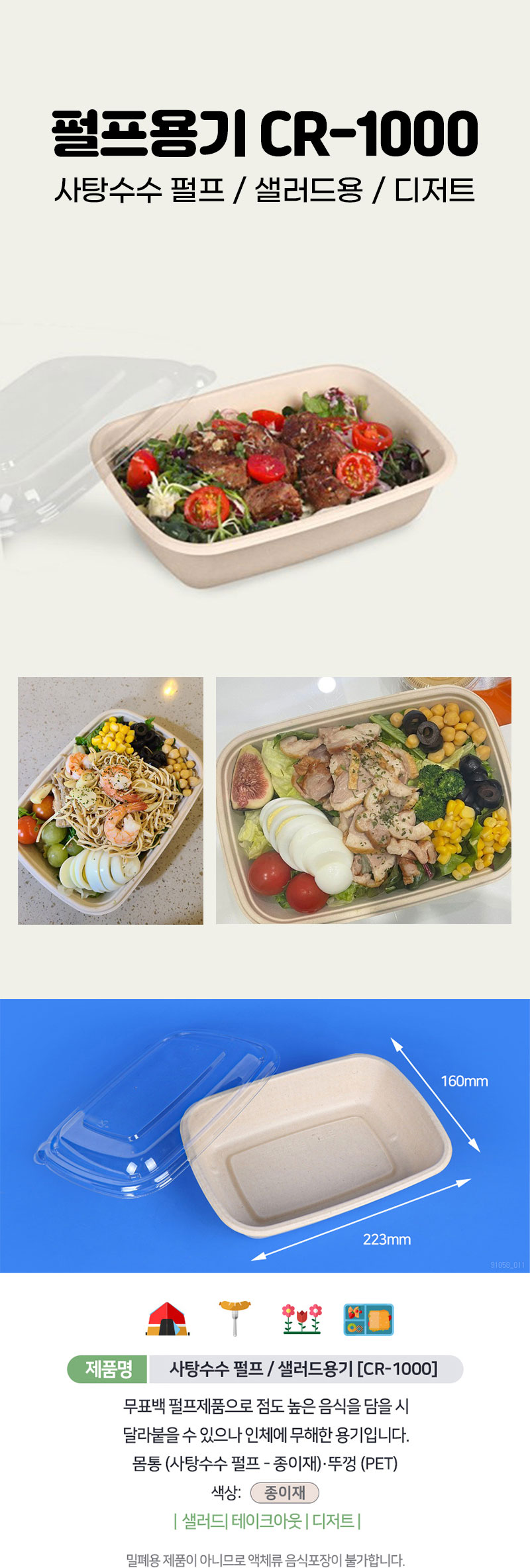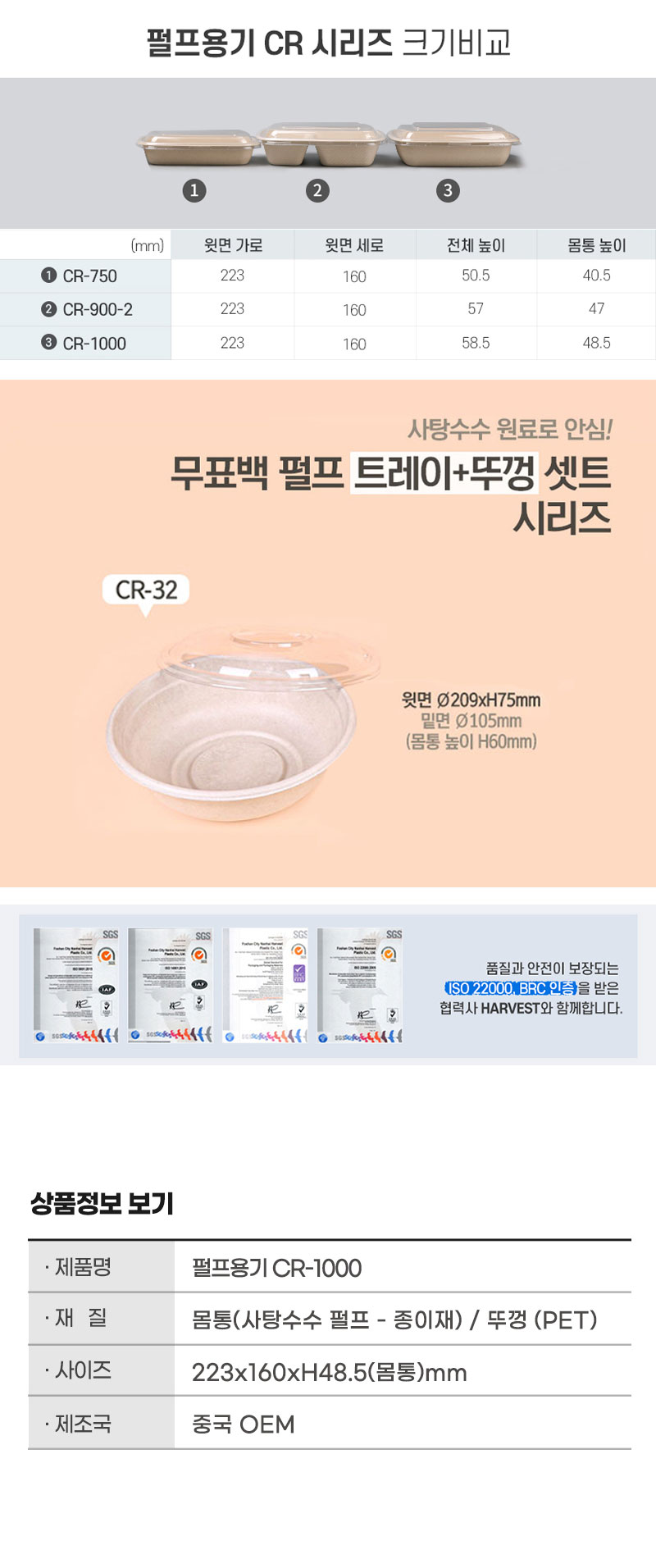 HOME > 포장용기/종이도마 > 종이.펄프용기 > 다온킹 펄프용기 CR-750 몸통뚜껑 300개